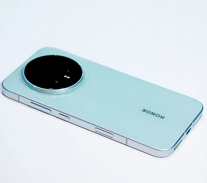 荣耀Magic8系列标准版后置了圆形摄像模块,镜头和闪光灯组件均安置其中,结合立边设计,电源按键和音量调节按键均安置在机身右侧。